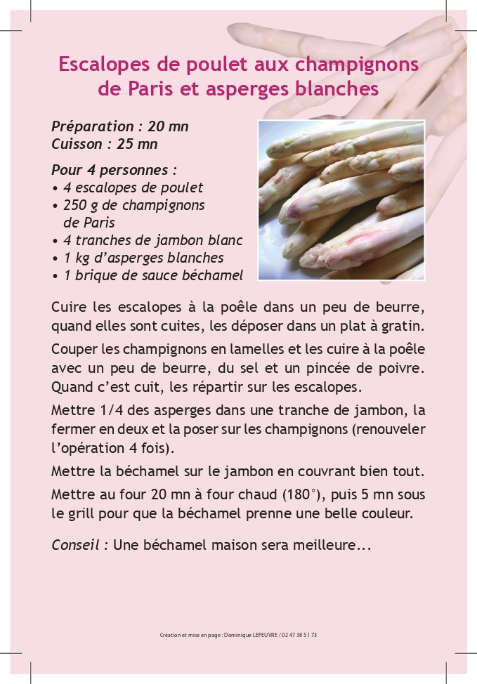 Escalopes de poulet aux champignons de Paris et asperges blanches